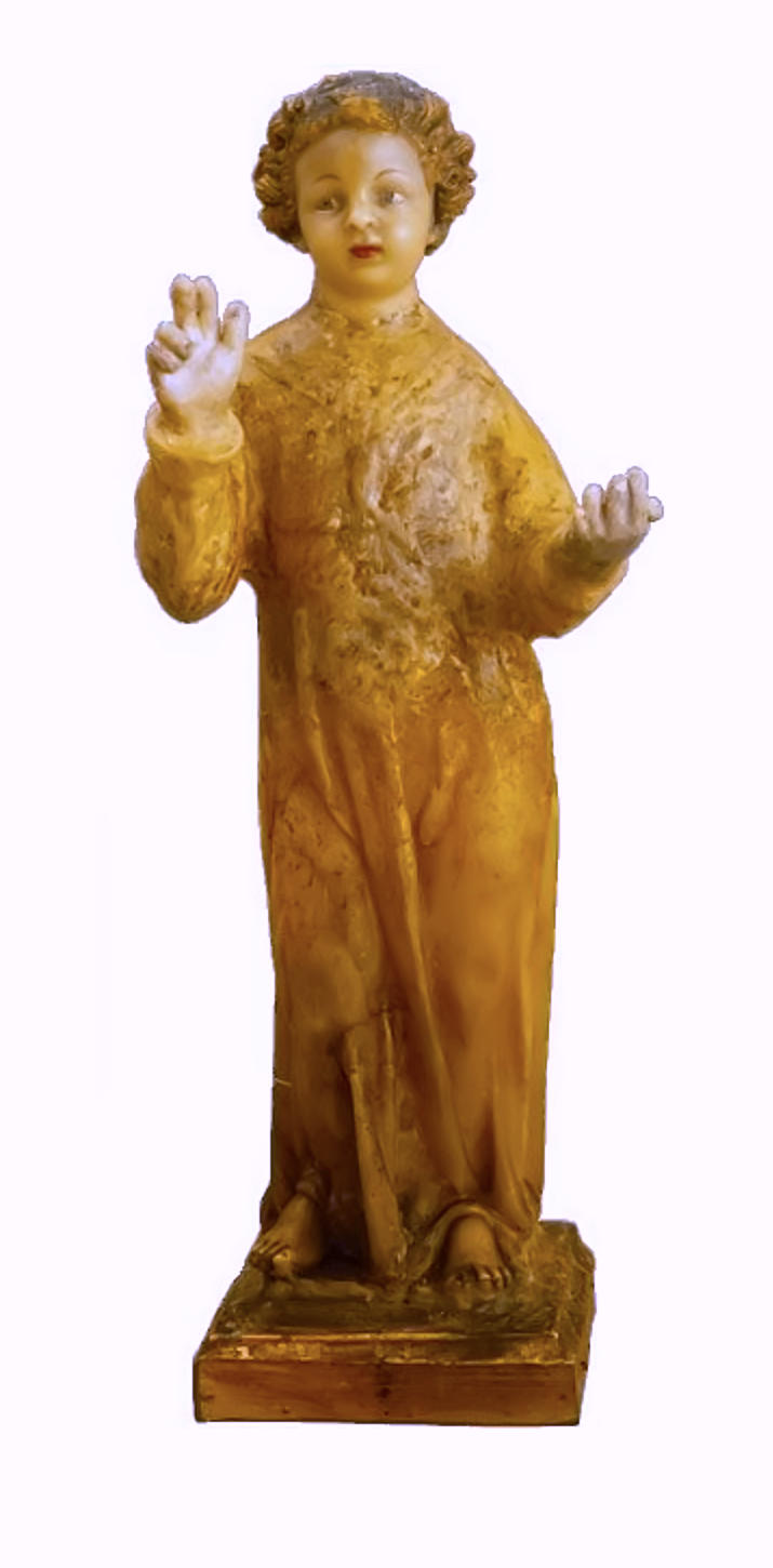 Between Cordoba and Seville, south of the Guadalquivir (according to others in the Toledo area), there once stood a famous Carmelite monastery which, however, had been almost completely destroyed by the Moors. Among the four surviving Carmelites who stayed in the ruins was the pious Brother Joseph a. S. Casa, who was generally known for his love of the mystery of the childhood of Jesus. One day, as he was sweeping, a small child of rare grace came up to him and watched him attentively: 'You are really good at sweeping, Brother Joseph', it said to him after a while, 'the floor is spotless'. But can you also pray a Hail Mary?' ;'Oh yes!' ;'Then pray it immediately...' Brother Joseph put the broom aside, collected himself for a moment and then said the angel's greeting devoutly. At the words ;'and blessed is the fruit of thy womb', the child interrupted him with the words : 'This is Me' and disappeared. Brother Joseph looked after him full of longing.”